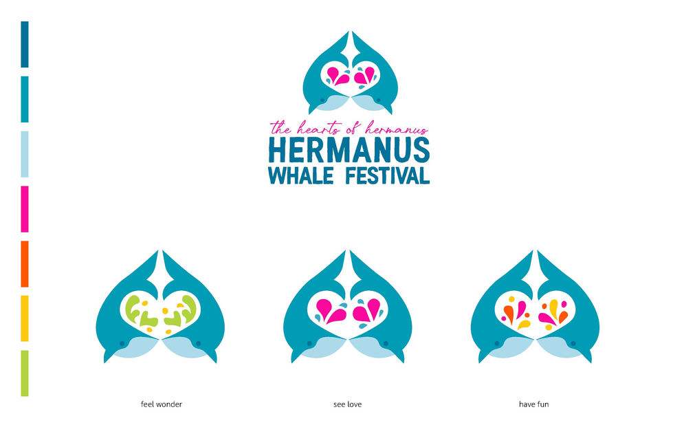 The Hermanus whale festival is a huge annual festival on the coast of South Africa. In contrast to its current branding, I implemented a fresher colour scheme, new brand artwork and typefaces, to highlight the springy, joyous, and open feel the festival promotes. The migrating whales the festival celebrates are the only type that have their blows look like hearts and could be called “The Hearts of Hermanus”.