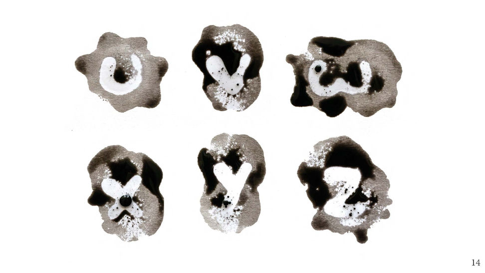 Water Damage is a unique typeface inspired by the look of black mold, the kind you get from water damage in buildings. Its shape also brings to mind puddles, whether from rain, spills, or tears, it captures the idea of water damage. I created this typeface by drawing letters with oil then sponging ink on top. This created a negative effect with the oil and water separating.
